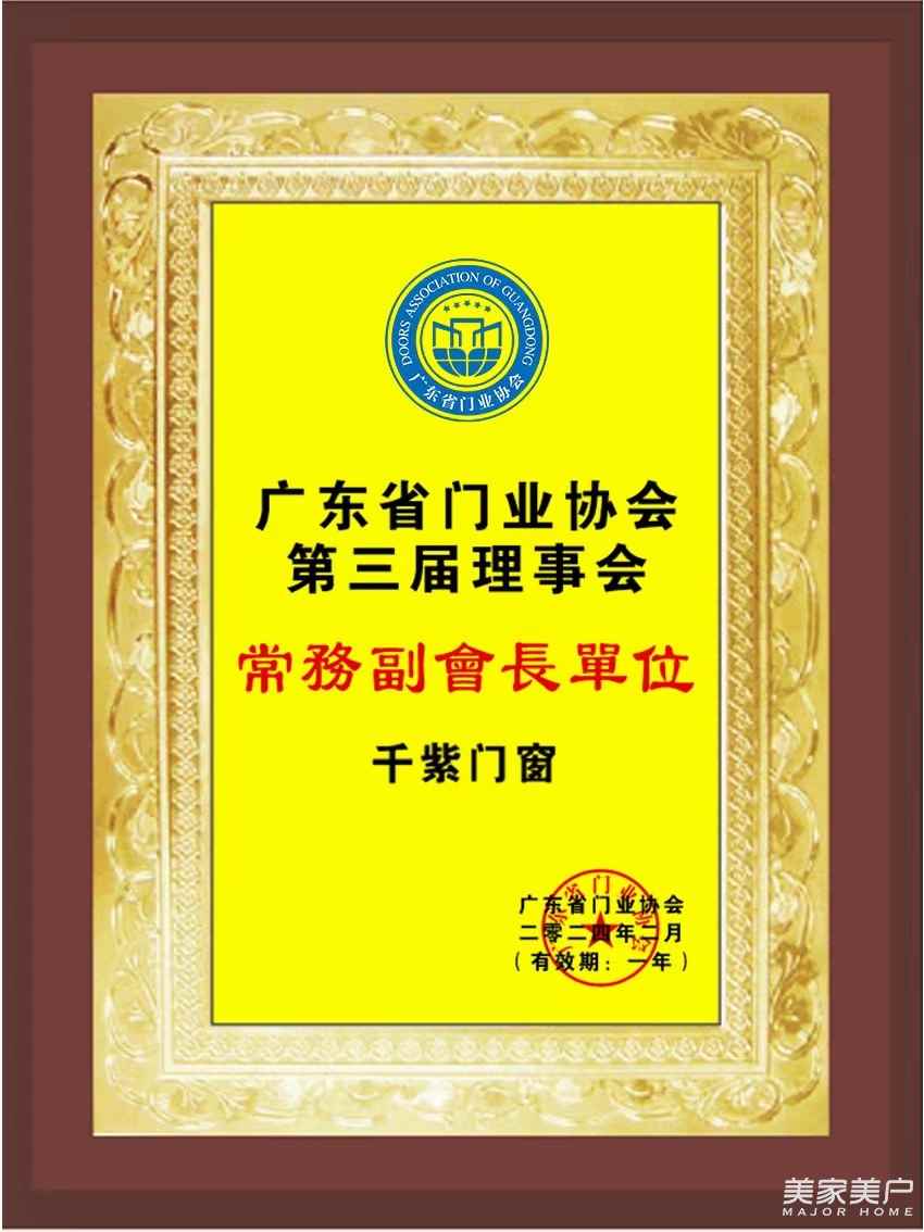 千紫门窗入选广东省门业协会常务副会长单位