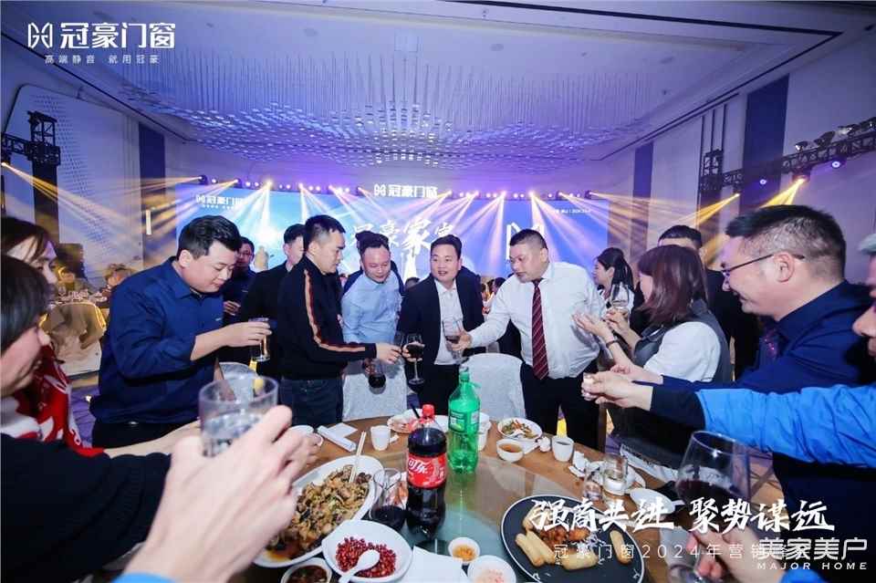 “强商共进 · 聚势谋远“,冠豪门窗董事长黄小勇在宴会上表示,让我们为过去一年的辛勤耕耘干杯,为取得的成绩干杯,为未来携手共进的美好愿景干杯!祝愿各位经销商伙伴及公司同仁们在新的一年里事业蒸蒸日上,家庭幸福美满!