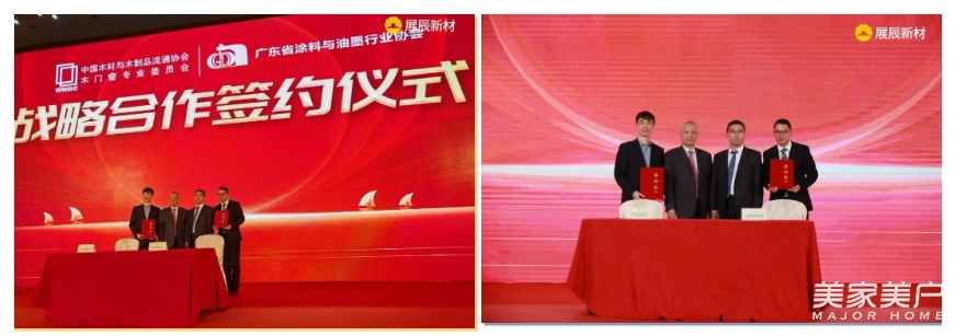 当日,广东省涂料与油墨行业协会和中国木材与木制品流通协会木门窗专业委员会在大会现场签订战略合作协议。在中国木材与木制品流通协会李佳峰会长、广东省涂料与油墨行业协会陈冰会长的共同见证下,由中国木材与木制品流通协会木门窗专委会执行会长张鹏和广东省涂料与油墨行业协会秘书长吕水列代表双方签约。
