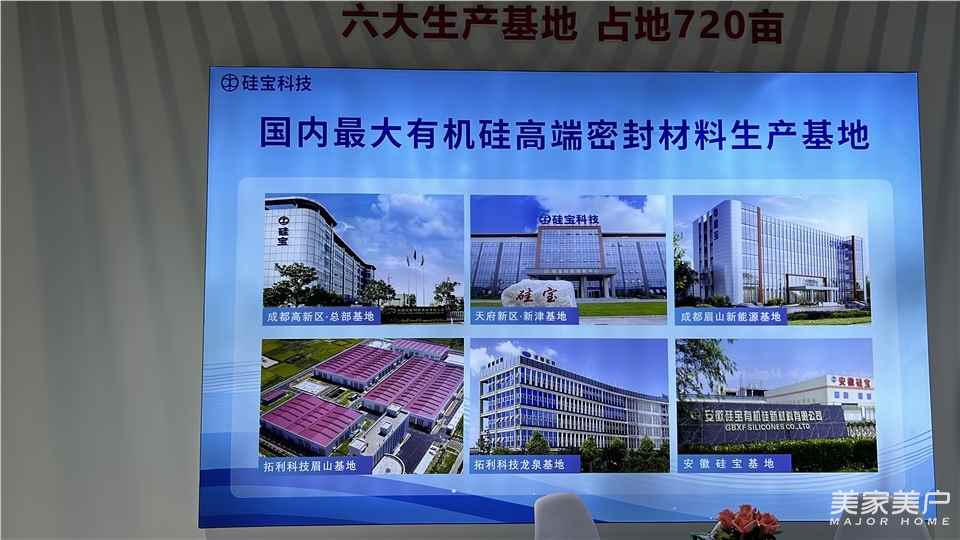 历经26年发展,硅宝已成为国内最大的有机硅高端密封材料生产基地。硅宝科技旗下拥有10家全资子公司、7个分公司,在全国建成6大生产基地,拥有5家高新技术企业,有机硅密封胶生产能力达26万吨/年,不仅畅销国内,还远销海外市场。据悉,2024年,硅宝还将在上海斥资1.5亿元购买土地,建设新的生产基地。