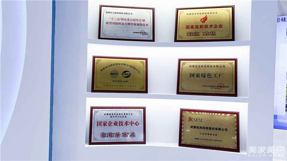 经过多年发展,硅宝经历了许多值得纪念的时刻,也获得了诸多殊荣。2020年,硅宝获得国家绿色工厂的认证,并荣获行业第一家制造业单项冠军示范企业称号,凸显了国家对中小企业创新能力的重视和对硅宝创新实力的认可;2021年11月,硅宝被评为制造业单项冠军示范企业,也是行业内唯一获此殊荣的企业。