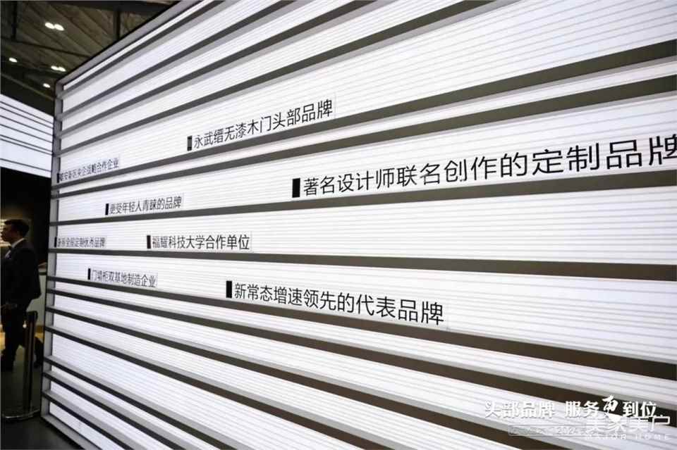 万嘉信品牌馆的设计十分亮眼,整体用疏密灯光线条打造出一个五维空间的景象,塑造出时光穿越的空间氛围,体现了万嘉信木门站在十年后,打造年轻家的理念。不仅是木门很优秀,万嘉信的门墙柜一体全屋设计的产品也是相当强悍的。其获得了2023门墙柜一体化技术进阶成就奖、无漆木门十佳品牌、门墙柜产业-完美一体化呈现力奖、“门墙柜一体化碳行者” 等诸多殊荣。千呼万唤始出来,犹抱琵琶半遮面,万嘉信不鸣则已一鸣惊人啊,据说为了这次参展,万嘉信人足足准备了半年之久。这个永武缙走出来的无漆木门头部品牌,正以昂首向前狂奔的姿态,走出永康,走出国门,走向世界……