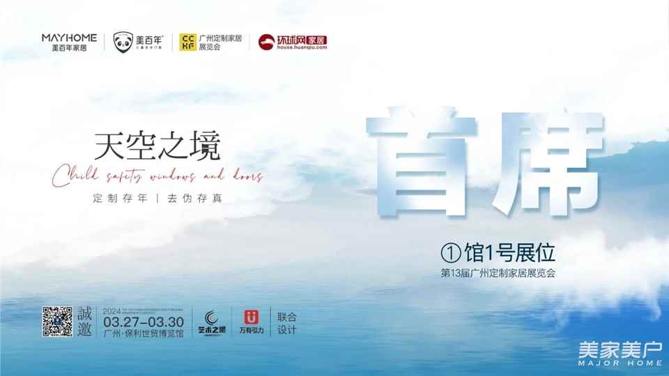赖锦良:“关爱儿童居家安全”是美百年的初心,希望通过我们的儿童安全产品,守护中国儿童居家安全、健康、快乐成长,让美百年成为儿童家庭的首选门窗家居品牌。3月27—30日,美百年门窗家居与艺术之眼&万有引力联合设计的“天空之境”主题展馆,将亮相2024广州定制家居展首席展位1号馆1号展位。同时,一站式赋能整装:儿童安全门窗&装企合作模式将同步发布!