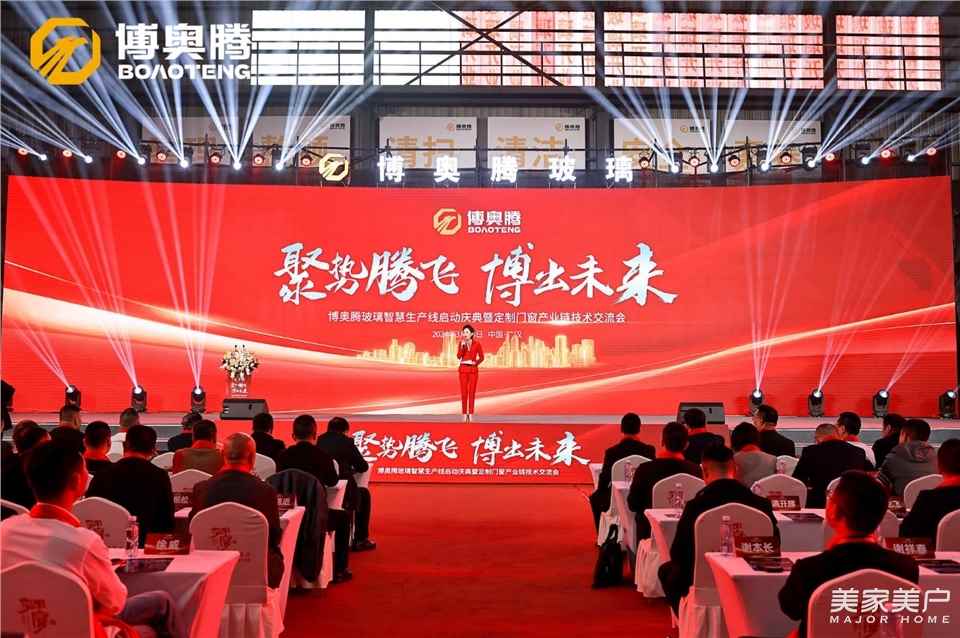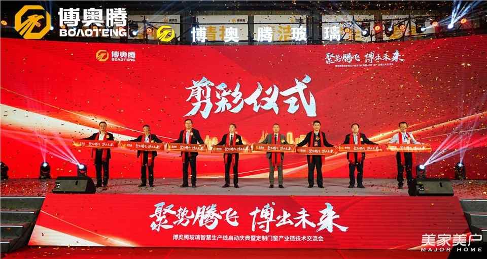 3月24日,四川博奥腾玻璃智慧生产线启动庆典暨定制门窗产业链技术交流会在四川省广汉市正式拉开帷幕。中国工程建设标准化协会幕墙门窗专业委员会主任王洪涛、中国工程建设标准化协会建筑募墙门窗专业委员会秘书长刘会涛、中国国检测试控股集团股份有限公司玻璃事业部总经理韩松、广东省门业协会执行会长徐生、广东省门业协会秘书长饶德亮、博奥腾玻璃总经理钟健、博奥腾玻璃副总经理李运波、飞宇门窗董事长陈仪、派雅门窗总经理易绍光、轩尼斯门窗副总裁余家优、老赖不赖门窗董事长赖世佑、雅之轩门窗董事长郑伟、良木道集团副总经理骆吉彬等领导和嘉宾,与来自全国各地的建材行业上下游企业代表,共同见证了这一重要时刻。