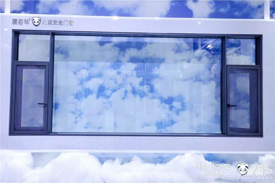 美百年主题馆以天空之镜为主题,在整个展馆内可以看到许多洁白的云朵,寓意着美百年将以更安全、更健康门窗家居产品,带给孩子们安全感,让孩子在家能够像在天空中一样自由翱翔。