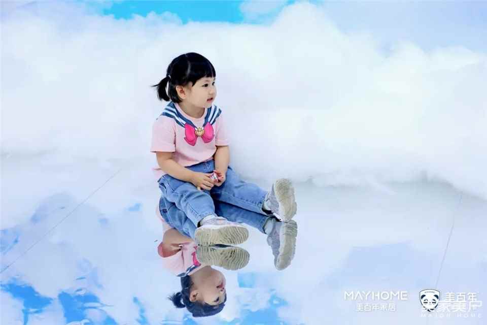 美百年“天空之境”展馆是以“关爱儿童居家安全”为初心,以茶卡盐湖天空之境的“纯净与无垠”为设计灵感,以电影《楚门的世界》男主角楚门“保持真诚与勇敢探索”的电影寓意为展馆立意,旨在为孩子打造一个安全、健康的居住成长环境,让家成为孩子的“天空之境”,让孩子在家自由翱翔,释放天性。