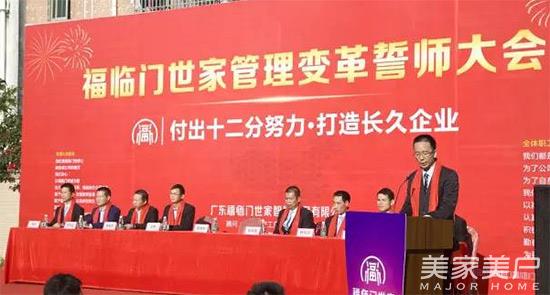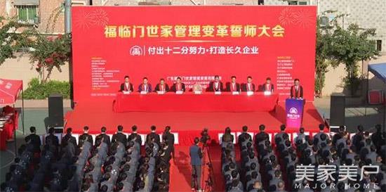 以变化应对变化,福临门世家管理变革誓师大会暨品牌升级发布的会召开,为公司未来的发展奠定基调。作为福临门人,我们将以高昂的热情,认真负责的态度,积极参与变革,树立品牌形象,我们牢记诚信、敬业、踏实、责任、感恩、用心工作,为福临门世家的振兴而拼搏,为全国各地的经销商们提升福临门世家品牌影响力而奋斗,为全国各地的终端消费者打造高品质门窗。
