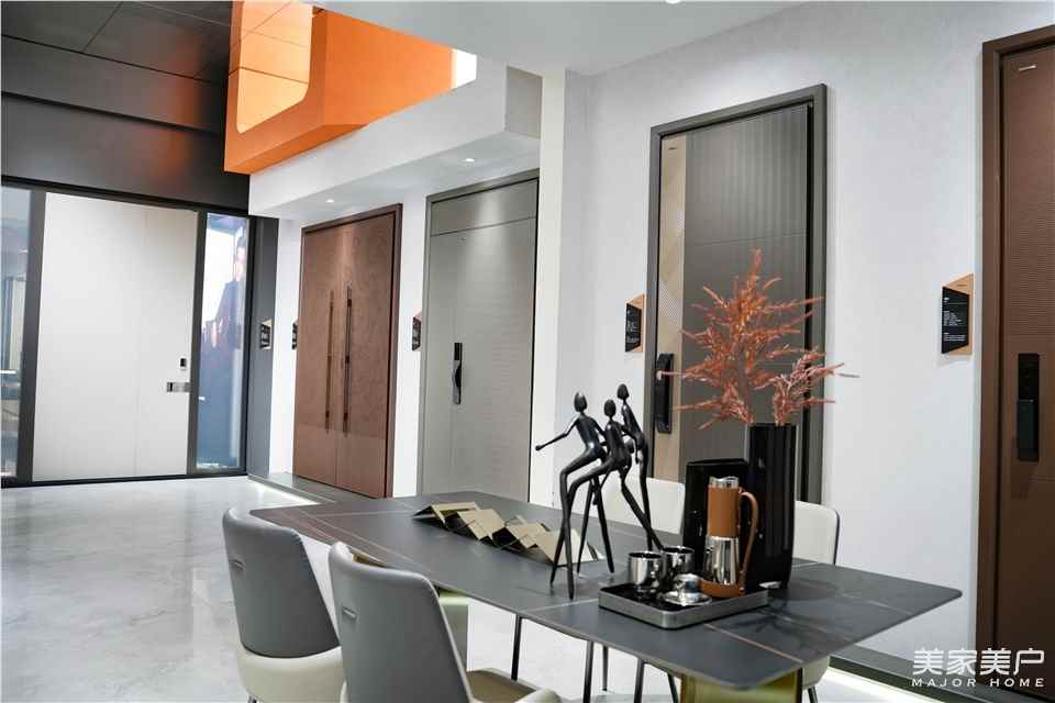 欧图门窗展厅中的展品,涵盖系统门窗、装甲门、钛镁合金门、木门四大品类,包括宅系、邸系、府系、墅系四大系列产品,简约的线条美感和设计感,雅致的色彩,体现出轻奢的高格调品味,并满足消费者对整家门窗一站式购齐的装修需求。