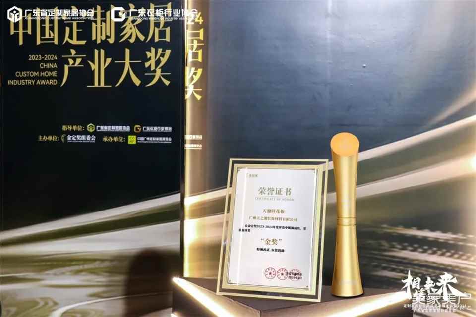 天湘板业获得2023-2024中国定制家居产业大奖 金定奖板材类 金奖!