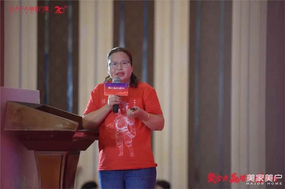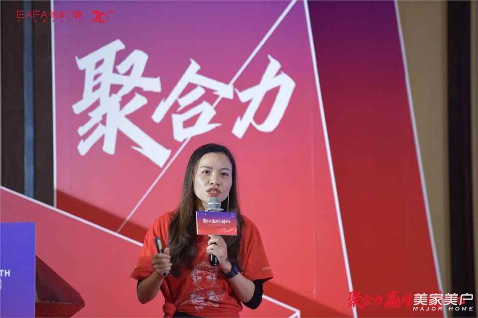 紧接着,怡发门窗营销中心总经理陈颖登台发表了精彩讲话,全面解读了2024年度的战略规划。陈颖总经理首先强调,新的一年对于怡发门窗而言,既是挑战也是机遇。在这样的背景下,怡发家人们必须比以往任何时候都更加紧密地团结在一起,携手并肩,共同努力,方能在新的一年中取得更加辉煌的成就。