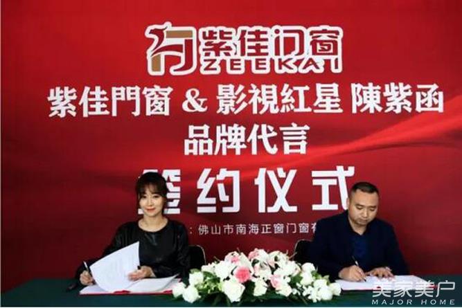 2016年12月27日,中国铝合金门窗高端品牌紫佳门窗与著名一线影视红星陈紫函再次签约为品牌形象代言人。作为合作两年的朋友,双方都少了严肃,多了轻松愉快,签约现场欢声笑语。相信本次与陈紫函的再次携手,将为紫佳门窗注入更多竞争力与源动力。