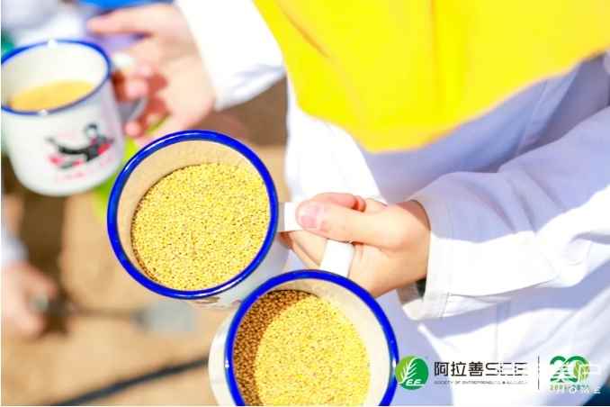 5月4日上午,沐浴着清晨的阳光,大家共同在阿拉善左旗巴润别立镇孟根塔拉嘎查“节水小米项目种植地”体验了小米春播,品尝了多样的小米产品,深刻体验到节水小米对保护水资源的重要性。