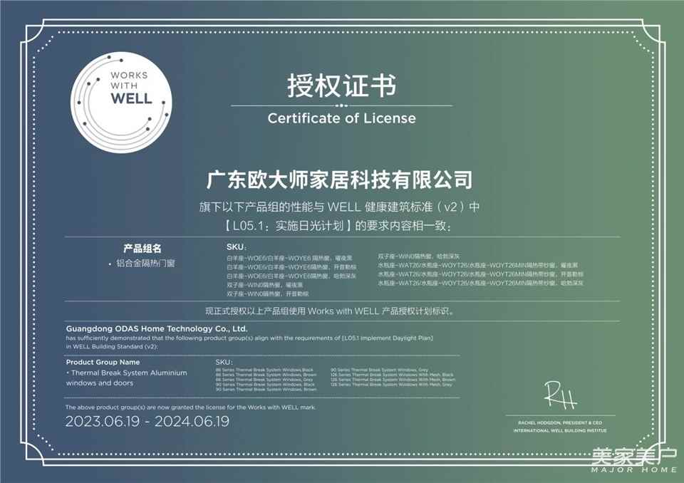 欧大师隔热门窗:健康门窗 | ODAS荣获Works with WELL™授权许可