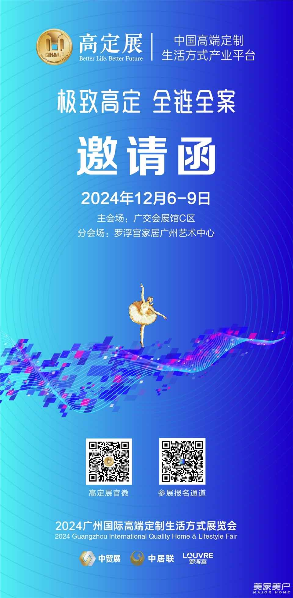 近日,笔者从2024广州国际高端定制生活方式展览会(简称“高定展”)组委会获悉,2024年12月6日-9日,由中国对外贸易广州展览有限公司、广州中居联会展有限公司、罗浮宫家居广州艺术中心联合主办,中国对外贸易广州展览有限公司、深圳中居联会展有限公司联合承办的“2024高定展”将在主会场(广交会展馆C区)及分会场(罗浮宫家居广州艺术中心)盛大开幕。为进一步推动定制门窗向高品质高质量方向发展,今年的高定展专门规划了定制门窗展馆;广东省门业协会也将组织协会优秀定制门窗品牌参展本届高定展,彰显定制门窗的产品魅力,为定制门窗向高质量发展赋能。