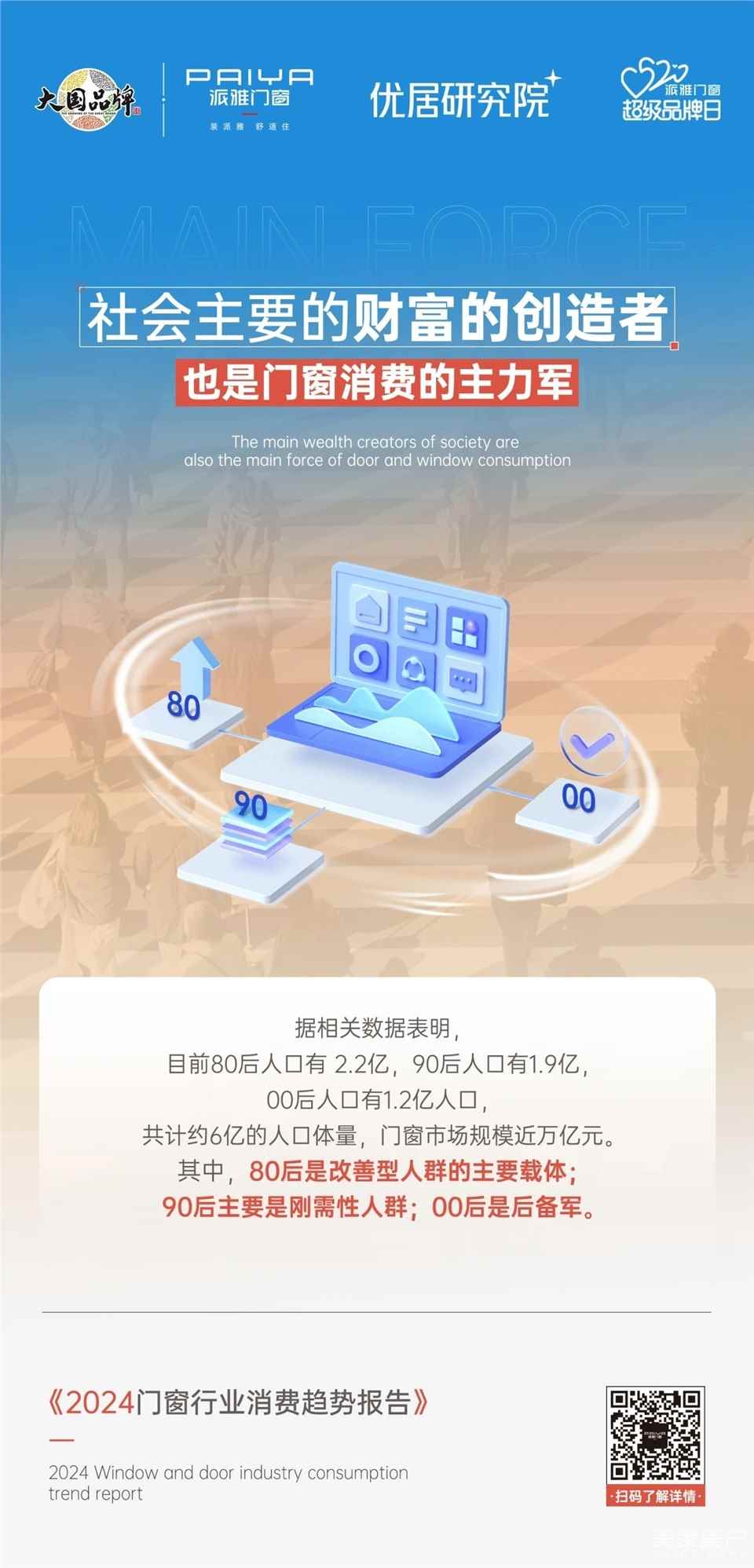 据《2024门窗行业消费趋势报告》表示,目前行业的主流消费群体为80后、90后和00后,他们在消费决策时更加理性,更重视产品的功能、科技含量以及购买产品所获得的价值,更倾向从多个线上渠道获取信息后再前往线下体验。