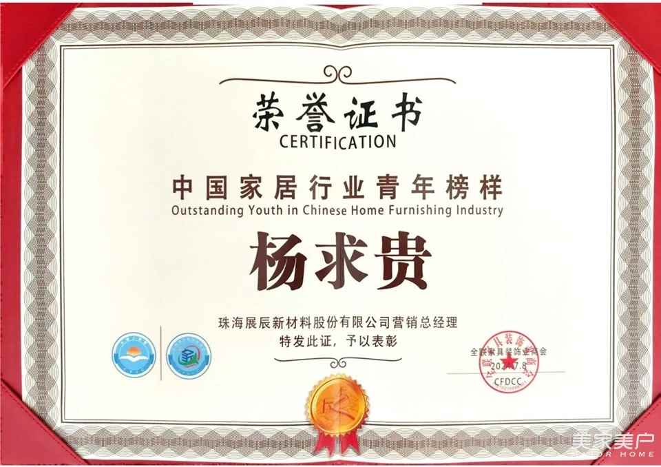 7月8日,全国工商联家具装饰业商会主办的“青蓝工程——年轻一代的责任与使命”活动在广州珠江邮轮上隆重开幕。“青蓝工程”作为家居行业联合青年人才、推动行业进步的重要举措,旨在为家居建材行业青年精英提供广阔交流平台,共商行业可持续发展大计,助力中国经济高质量发展。展辰新材营销总经理杨求贵先生应邀参与本次活动,并被授予“中国家居行业青年榜样”荣誉称号。未来,展辰新材将继续践行致力于客户成功的企业使命,与合作伙伴并肩前行。