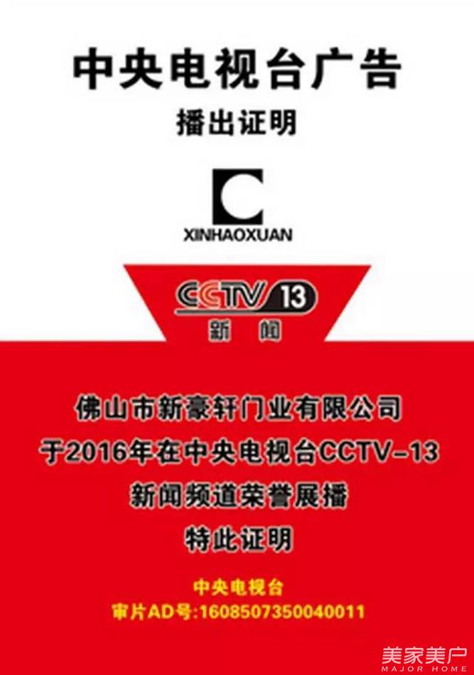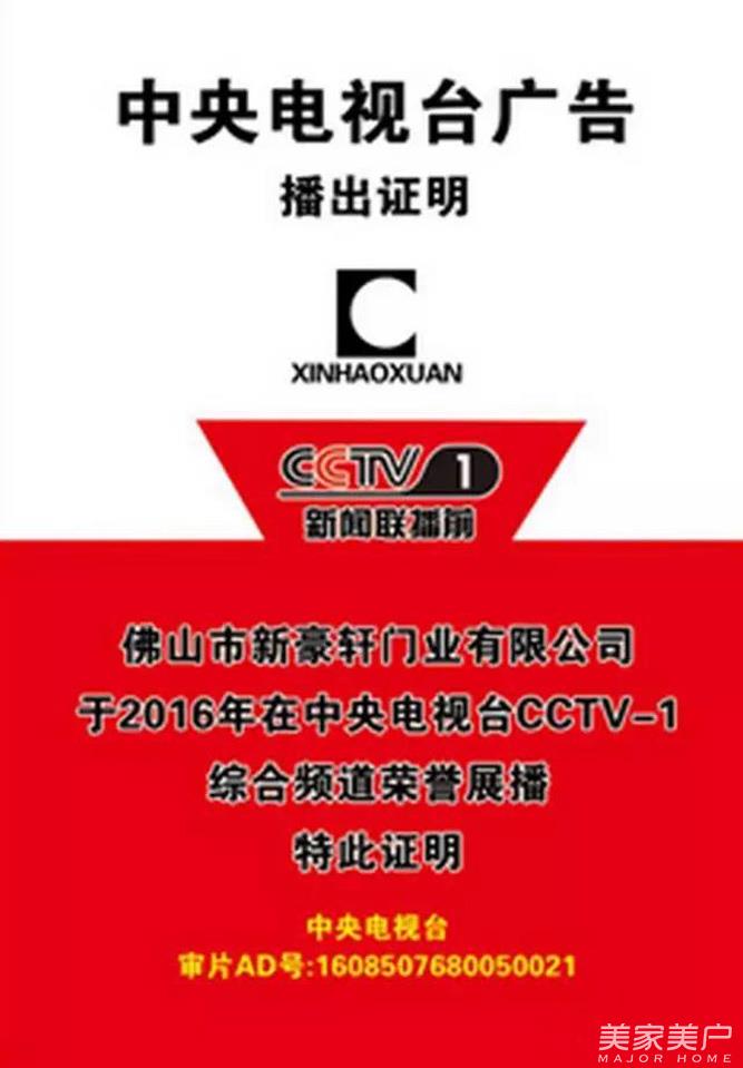 公司营销策略进行全新部署。2016年度,新豪轩品牌最大的亮点,成为铝合金门窗行业第一家在CCTV-1黄金时间段投放年度广告的品牌。这一战略是拉升新豪轩品牌高度的第一步动作。