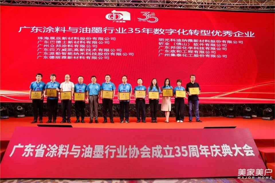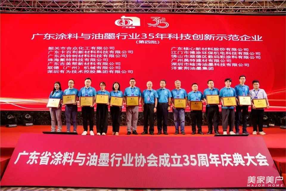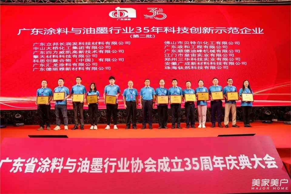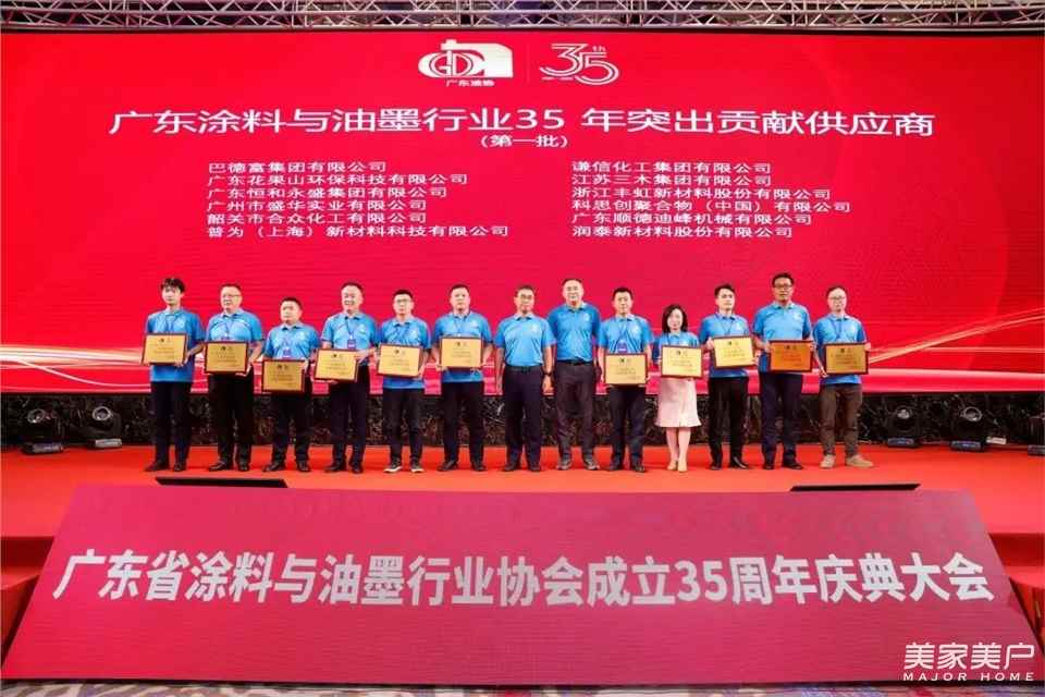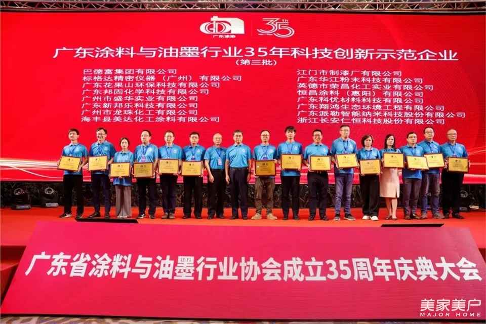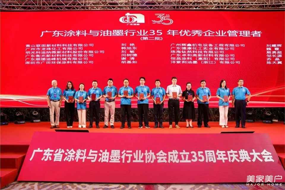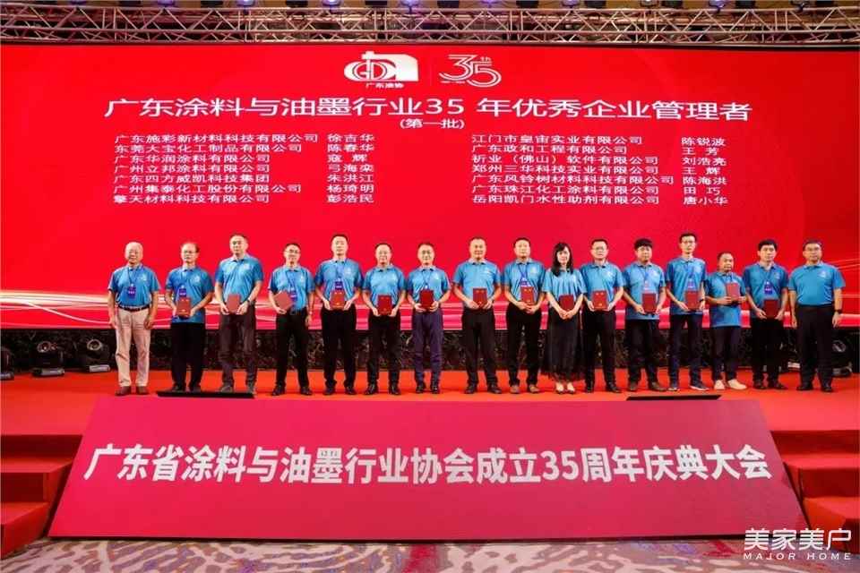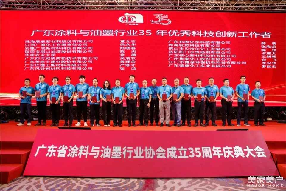 2024年,是中华人民共和国成立75周年,也是广东省涂料与油墨行业协会成立的35周年。为纪念广东省涂料与油墨行业协会成立35周年,全面展示广东涂料35年来所取得的显著成就,进一步加强对广东涂料发展的总结、宣传、推广,在本次大会上,隆重表彰了一批优秀企业,以及有突出作为和贡献的个人。