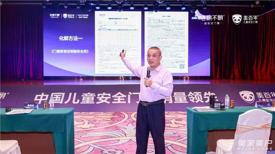 佛山市门窗行业协会执行秘书长马建华致辞中多次强调“儿童安全”的重要性,并表示:老赖不赖主打是儿童安全门窗,儿童是祖国的花朵,也是共产主义接班人。“儿童的安全”我们都不重视,还要重视什么呢?