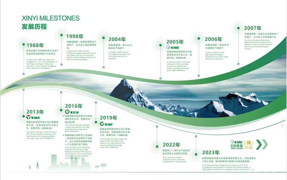 信义玻璃控股创建于1988年,总部位于中国香港,于2005年2月在香港联交所主板上市(股票代码:00868.HK)。作为全球综合玻璃制造业的引领者,信义玻璃长期致力于优质浮法玻璃、汽车玻璃、节能建筑玻璃的研发与生产,已形成从原材料到浮法玻璃、再到下游深加工玻璃产品的一体化生产及销售产业链。信义玻璃的浮法玻璃产能在全球处于领先地位,汽车玻璃在全球售后市场中占比达25%,镀膜玻璃在中国建筑玻璃市场占比达35%。