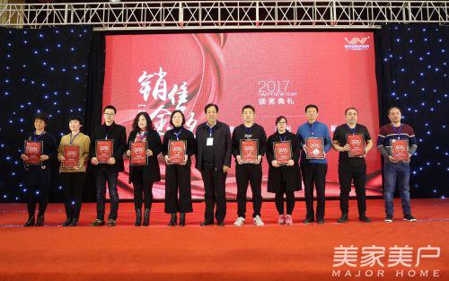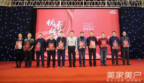2016年,终端市场涌现出一批批有思想干劲的万家园木门经销商。为了发扬他们逆势而上,大胆创新,敢想敢干的精神,此次年会特别设置颁奖环节,表彰过去一年成绩突出的经销商,授予万家园上海、天津、青岛汇展、济南、滨州、淄博总店、聊城、银川、呼和浩特、连云港、烟台、桓台、榆林、高碑店、驻马店、锦州、昌邑、肥城、莱州、莒南门店“优秀经销商”荣誉称号;授予万家园东营、南京、苏州、沈阳、河南新乡、吉林榆树、河津、胶南、霸州、汉沽、即墨、沭阳、菏泽、章丘、平度、滕州、丹阳、薛城、静海、马磊门店“整木家居销售金奖”荣誉称号,希望他们在2017年能够继续扎实开展各项工作,勇攀新的高峰!