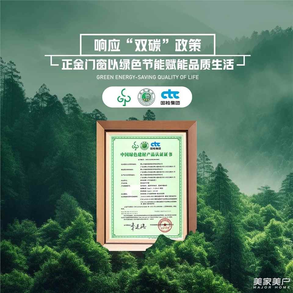 同时正金门窗积极开发绿色环保、持久可靠的高品质、低能耗系统门窗,为消费者带来绿色生活方式,全系产品荣获“中国绿色建材产品三星认证”,这是中国绿色建材产品最高级别。获得绿色建材产品认证,是国家权威机构和行业对正金门窗高品质、绿色低碳效能的充分肯定和认可,标志着正金门窗产品具有安全、环保、节能、低碳等重要特征。