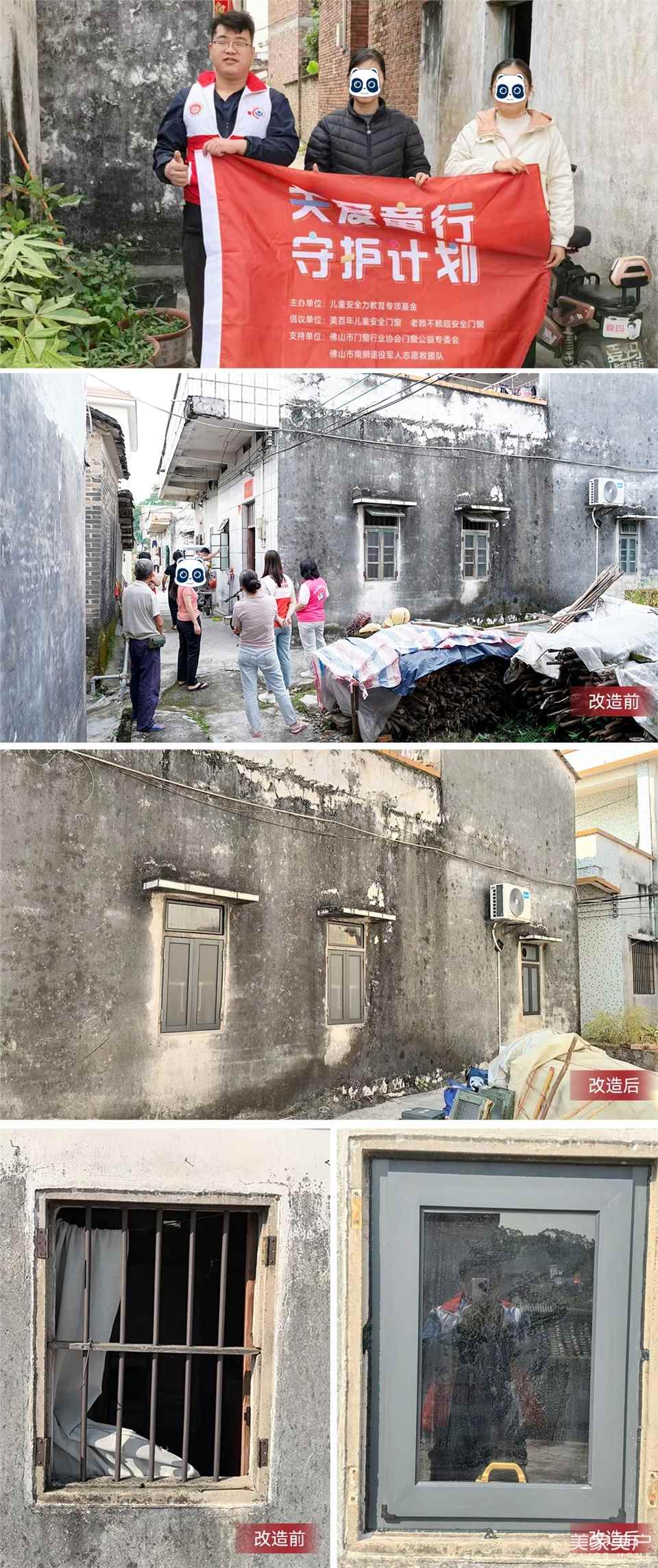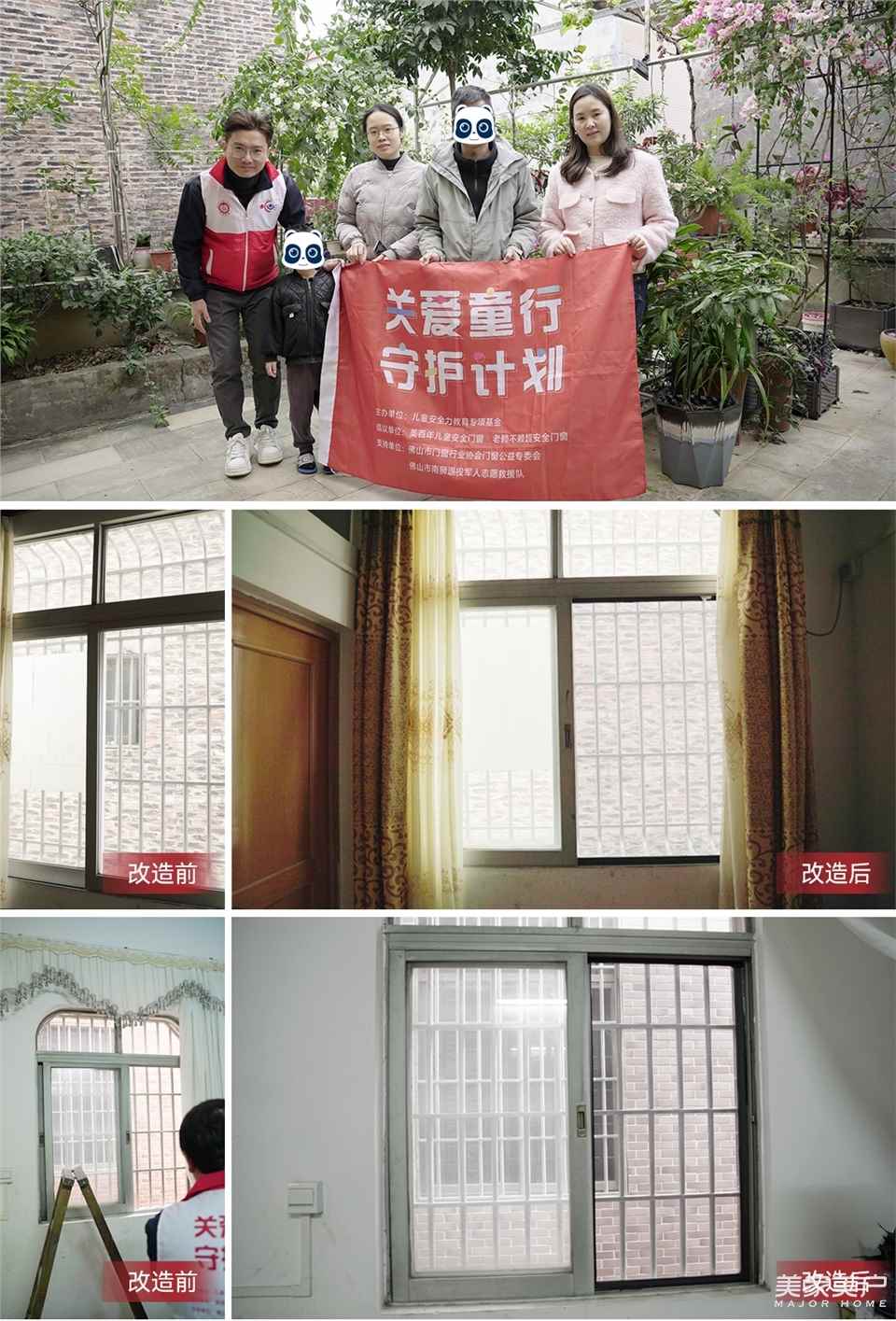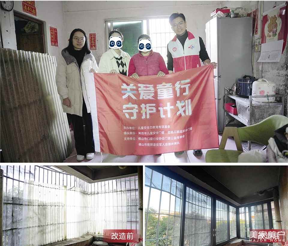 孩子的健康成长,是家庭与社会的共同心愿。佛山市儿童福利会、佛山市门窗行业协会门窗公益专委会,在中国红十字基金会儿童安全力教育专项基金指导下,在佛山市家居产业联合会,广东省门业协会、佛山市南狮边役军人志愿救援队的支持下,携手美百年门窗家居、老赖不赖超安全门窗等近百家爱心企业,共同发起的“关爱童行 守护计划”家居焕新改造公益行动。12月20日,已顺利完成首批受助家庭的门窗公益安装和交付使用!