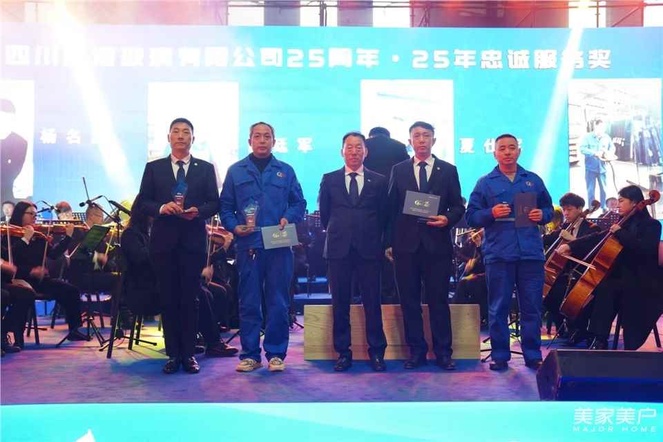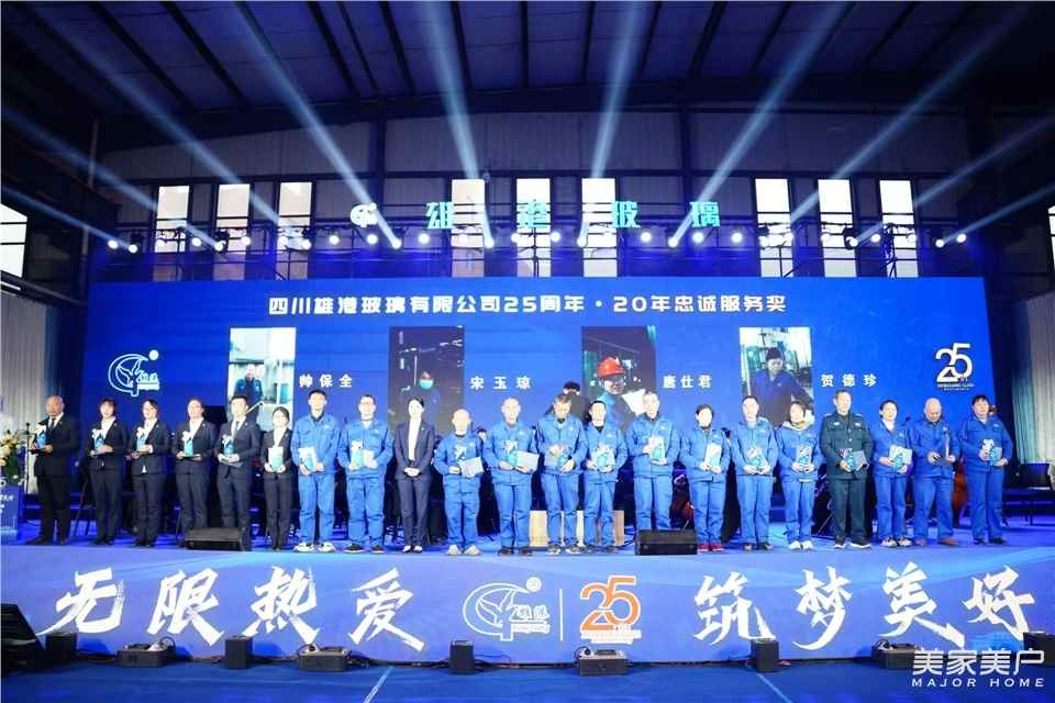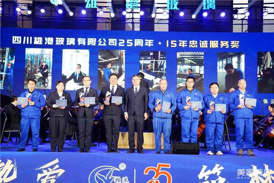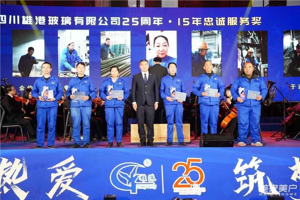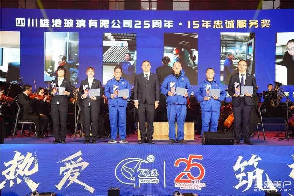 25年的发展历程,离不开公司员工的共同努力与付出,为此,雄港玻璃特颁发了25年忠诚服务奖、20年忠诚服务奖、15年忠诚服务奖、管理榜样奖、奉献榜样奖等奖项,以此感谢每一位为公司的发展作出贡献的员工。雄港玻璃董事长杨加全、总经理李玉平、常务副总经理杨宗建等领导上台为获奖员工颁奖。同时,公司鼓励大家再接再厉,继续发扬爱岗敬业的精神,为公司的再攀新高作出积极的贡献。