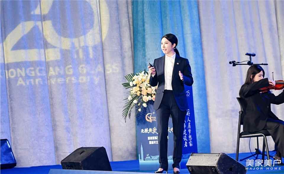 主题演讲环节,雄港玻璃总经理李玉平、销售副总经理李锦分别作了主题为《2000-2025•无限热爱》、《蜕变•筑梦美好》的精彩演说。演说中,李玉平与李锦带领大家回顾了雄港玻璃奋发拼搏的激情奋斗岁月,让大家再一次对雄港玻璃的25年发展历程有了充分的认识。同时,通过雄港玻璃获得的各项荣誉的展示,让大家对公司25年取得的各项成绩有了深入的了解。目前,雄港玻璃的生产规模、生产总值已经名列前茅,品牌价值不断攀升,在行业内成为了影响力、号召力、美誉度兼得的优质企业。