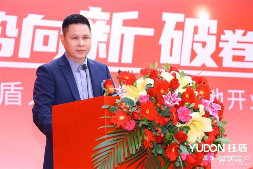 盛典伊始,贺源粮董事长上台致欢迎辞,贺总向现场所有来宾和各界朋友们表示热烈的欢迎和衷心的感谢,并表示全新亮相的钰盾全新智造基地和高定体验馆,是品牌具有里程碑式的全新突破,更是钰盾品牌面向新征途的新起点和发力点。钰盾将以此为契机,不断优化产品结构,提升服务质量,夯实高端入户门行业领军品牌形象。