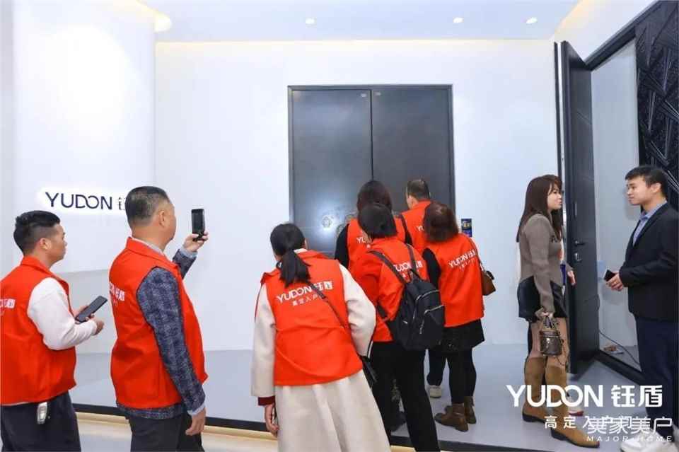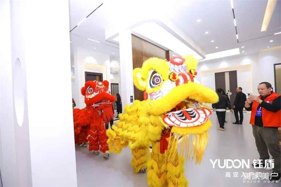 雄狮引领众领导嘉宾一同进入钰盾全新高定体验馆,在喜气吉祥的气氛中揭幕仪式圆满礼成,全新体验馆闪耀面世,陆续迎来八方来宾的参观。钰盾高定体验馆以现代简约风格为基调,一步一景,移步换景,呈现出沉浸式多元场景体验。体验馆巧妙植入品牌元素,不仅全方位展现了钰盾原创设计产品的魅力,更充分展示了高定入户门精湛的工艺及高品质的五金配件,更使钰盾高端入户门品牌的形象深入人心,让钰盾品牌成为点燃行业力量的新引擎。