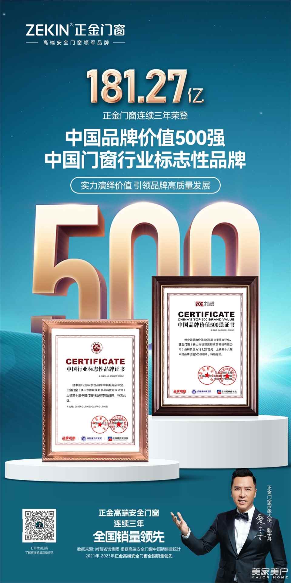 181.27亿!正金门窗连续三年荣登中国品牌价值500强 连续三年荣膺中国门窗行业标志性品牌 实力演绎价值 引领品牌高质量发展