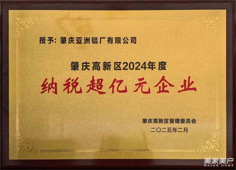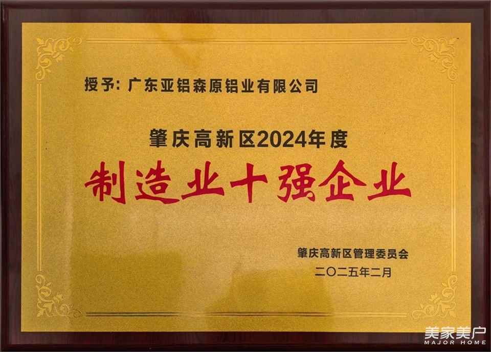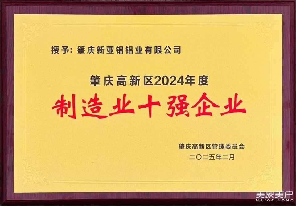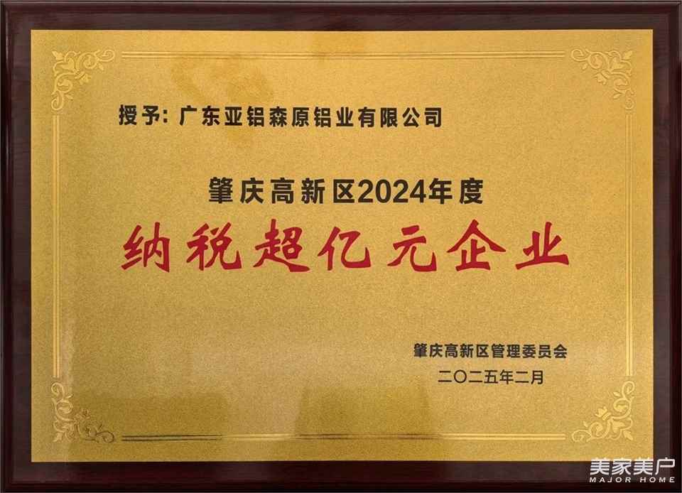 为表扬先进,树立典型,发挥民营企业创新主体作用,肇庆高新区党工委、管委会对2024年度超百亿企业、制造业十强、经济贡献突出企业、标杆示范企业、高成长十强等企业予以通报表扬。AAG亚铝的广东亚铝森原铝业有限公司、肇庆亚洲铝厂有限公司、肇庆新亚铝铝业有限公司等多家企业榜上有名,分别荣获了2024年度肇庆高新区“制造业十强企业”、“纳税超亿元企业”、“纳税超伍千万元企业”、“经济贡献突出企业”等荣誉称号!亚铝获得的多项荣誉牌匾展示: