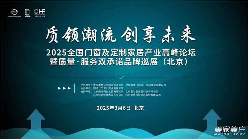 2025年3月6日,由中国木材与木制品流通协会、中展智奥(北京)国际展览有限公司共同主办、固诺(天津)实业有限公司协办的“2025全国门窗及定制家居产业高峰论坛暨质量·服务双承诺品牌巡展(北京)”活动在首都国际会展中心成功举行。本次论坛以“质领潮流,创享未来”为主题,吸引了众多行业精英、企业代表、专家学者及媒体齐聚一堂,共同探讨门窗及定制家居产业的发展趋势与创新之路。
