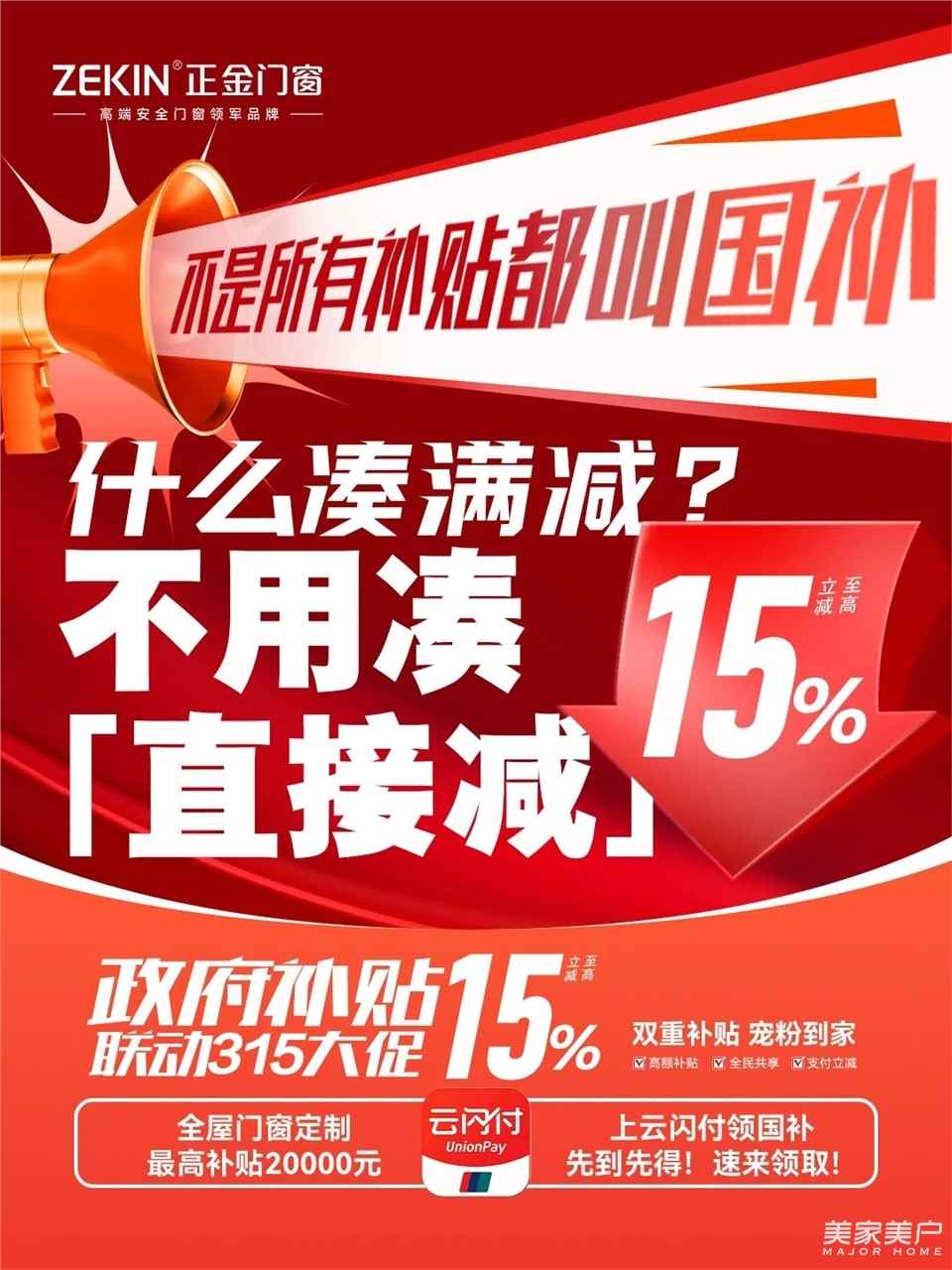 此次活动不仅是正金门窗对品质的坚守与承诺,🛡️🛡️更恰逢政府大力推行门窗换新升级国补政策。🎁🎁正金门窗315活动大促联合国补福利,最高补贴可达15%优惠,为广大消费者带来前所未有的家装福利。🍾🍾