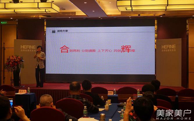 与此同时,周总对合辉系统2016年进行了全面的回顾和总结,宣布了合辉铝建筑系统2017年战略规划。据悉,2017合辉系统将斥巨资将建立起“现货平台”,在仓储物流方面给予合作伙伴更加有力的保证和支持。除此以外,”加工技术培训中心“也将逐步完善,实现对合作伙伴标准的技术支持与输出,保证合辉系统输出的标准性与高品质。