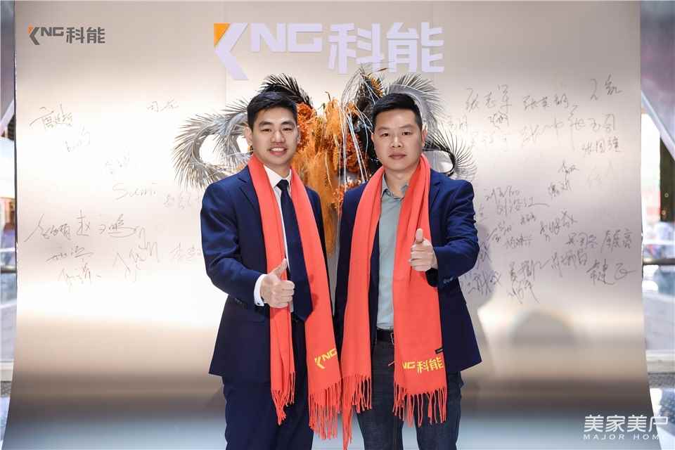 左:科能五金华南区域负责人袁宝均,右:广东省门业协会秘书长饶德亮