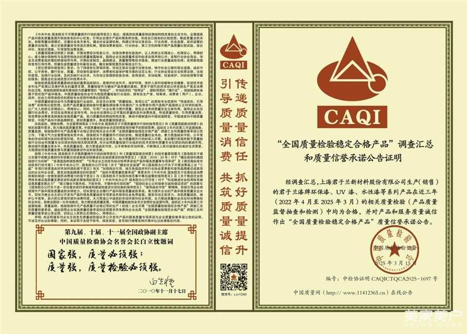 君子兰,始于1994年,三十余年聚焦家具漆领域,以品质与服务匠心发展至今。从原材料的精心挑选,到生产工艺的严格把控,每一个环节都凝聚着君子兰人的心血,君子兰深知,优质稳定的产品是服务好客户的基础。只有通过严格检测的流程,才能称之为合格的产品!我们坚持用严谨务实的品控态度,为每一批产品赋予“品质身份证”。