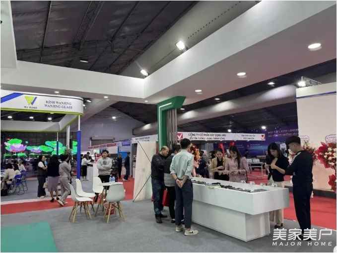 展台前人流如织,越南工程商、房地产开发商及东南亚采购商纷纷驻足洽谈,现场达成多项合作意向。