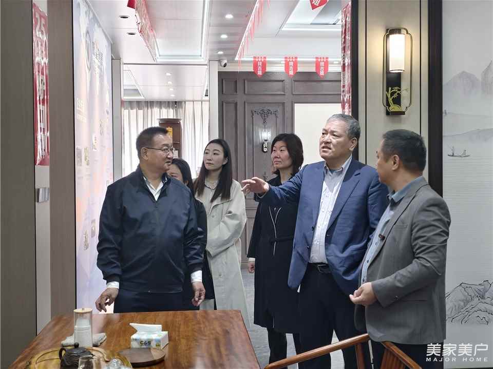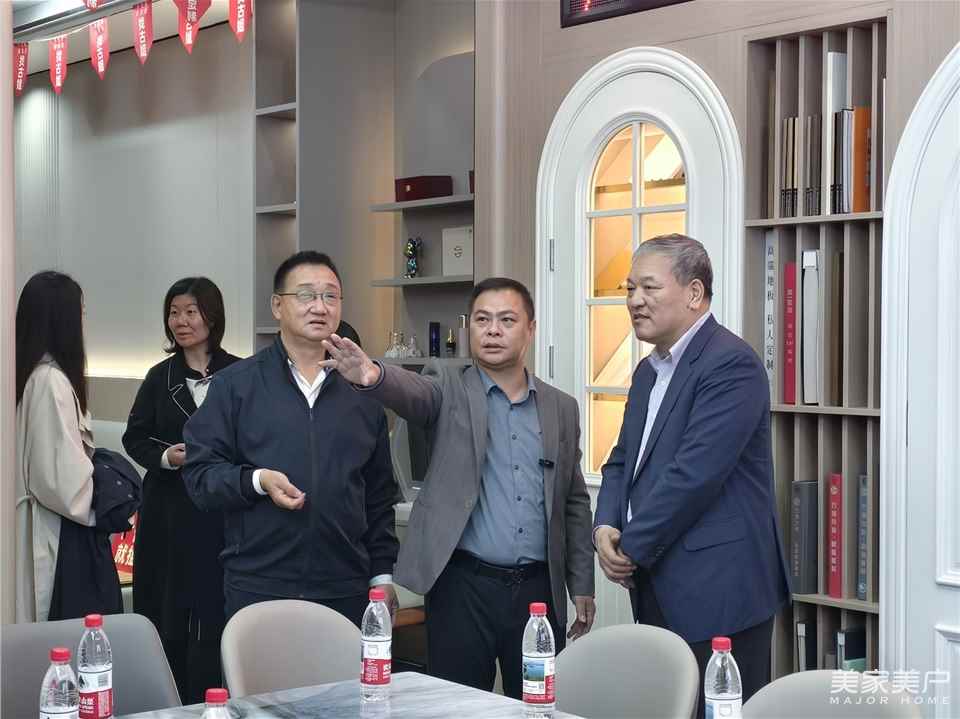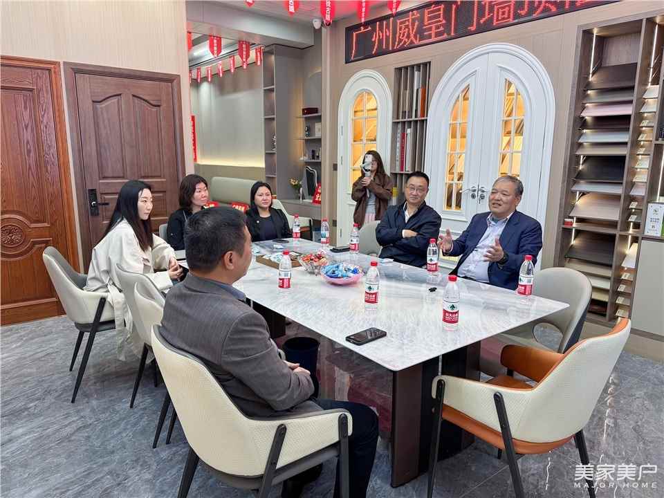 2025年4月2日,广东省门业协会执行会长徐生陪同国家市场监督管理总局标准创新管理司原司长崔钢、中国标准化协会家居建材质量专业委员会副主任委员周妍玥一行,赴威皇木业调研交流。威皇木业董事长谭增茂热情接待并全程陪同参观企业全屋整装定制展厅,双方围绕行业标准化建设、绿色低碳转型以及数字化转型出海等议题展开深入探讨。
