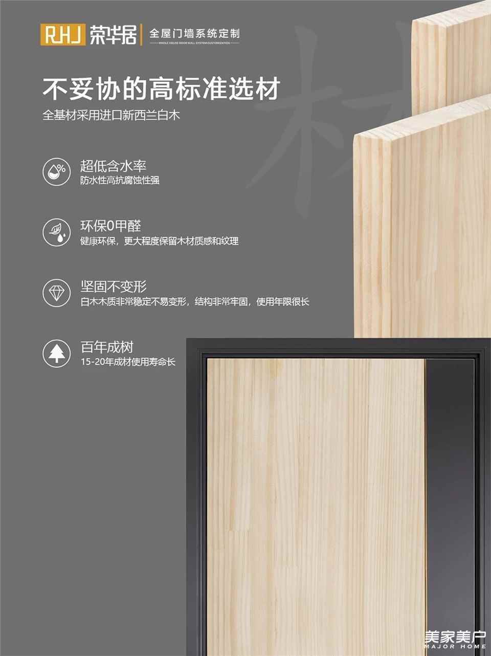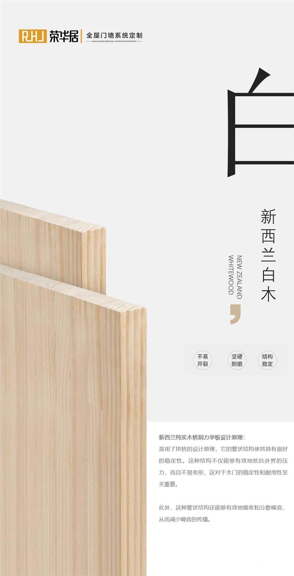 其一,荣华居的全系产品均选用优质的新西兰白木作为基材;