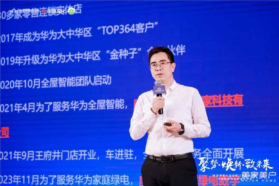 广东华海智家科技有限公司总经理魏孙波进行了《华为鸿蒙智家后装解决方案》主题演讲。他表示,当前世界正经历智能化革命的全面洗礼,已催生出个人智能化、汽车智能化、AI人工智能化和空间智能化四大亿万级赛道。作为智能化浪潮的重要组成,空间智能化正在引领人们生活空间设计与体验升级的第三次革命。依托全屋智能领先的"1+2+N"架构设计,华为鸿蒙智家可以做到帮用户装好房,改好房,用好房,创造生活的无限可能。