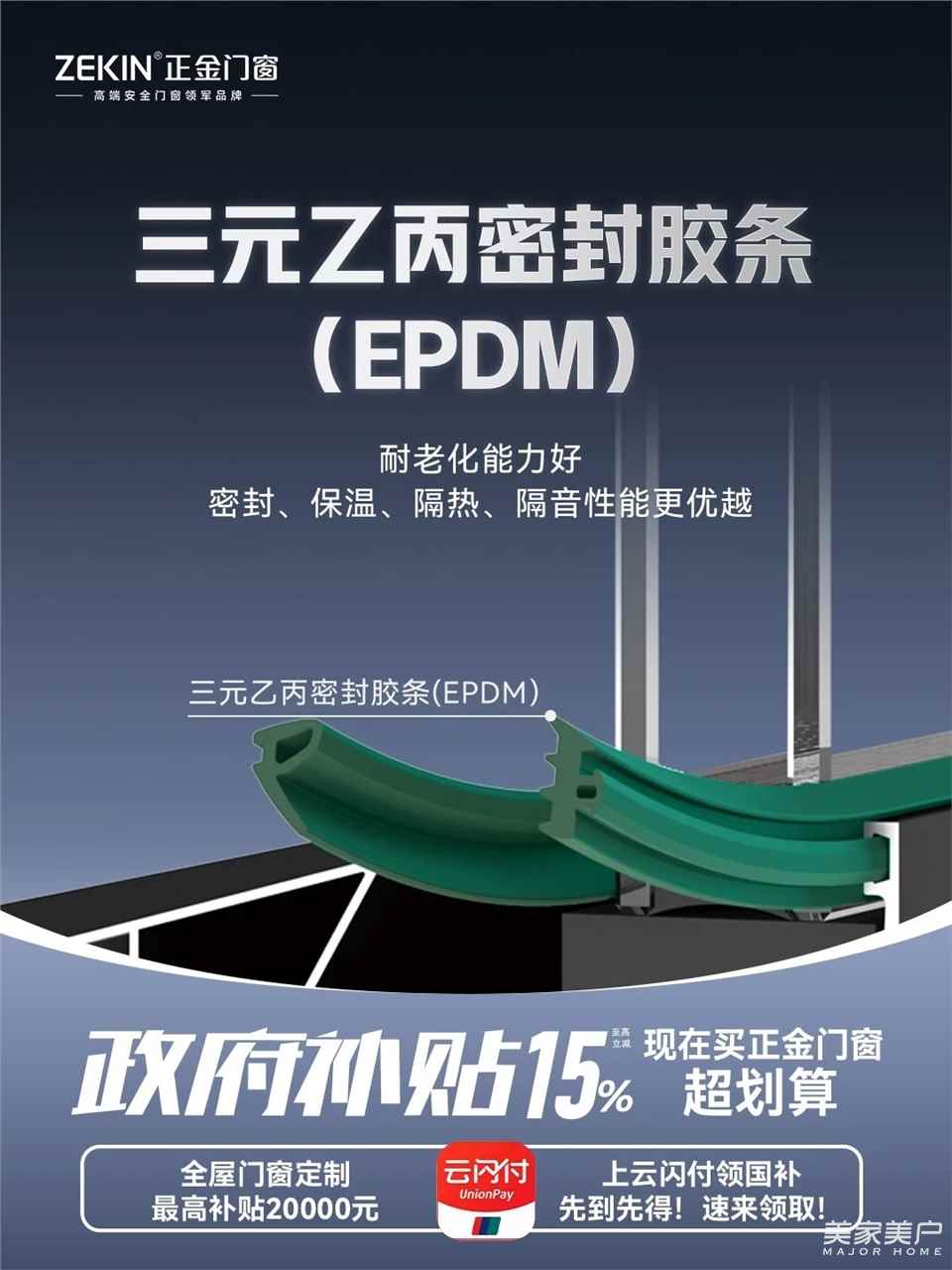 ✔️建议选三元乙丙(EPDM)密封胶条,不建议选PVC密封胶条。PVC材质的胶条易发硬,有刺鼻性气味,同时易致使框料发黄,使用寿命短。而EPDM密封胶条综合性能优异,耐臭氧、耐高温、耐候抗老化,使用寿命长。
