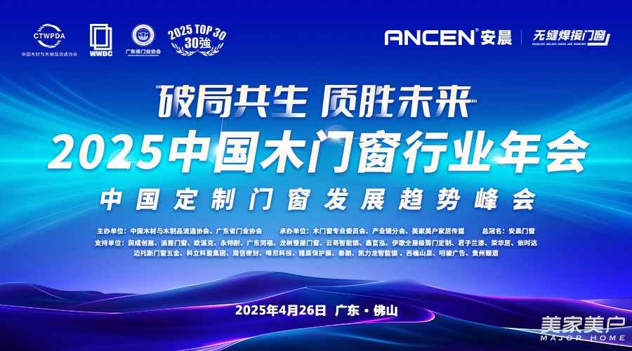 2025年4月26日,由安晨门窗总冠名、中国木材与木制品流通协会与广东省门业协会联合主办的“2025中国木门窗行业年会、中国定制门窗发展趋势峰会”在佛山成功召开。