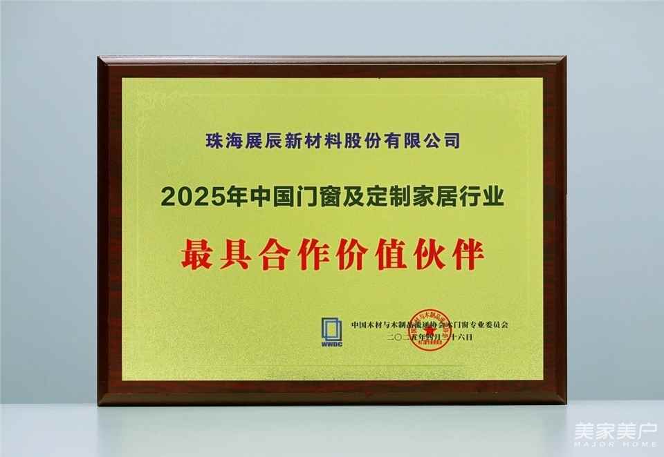 展辰新材获评“2025年中国木门窗及定制家居行业最具合作价值伙伴”