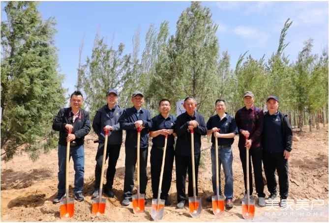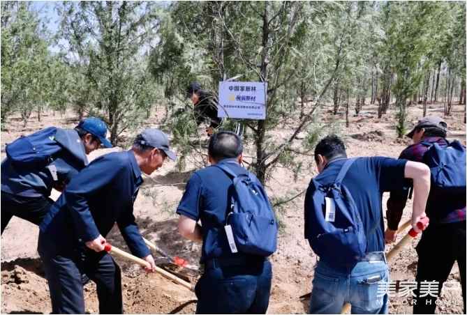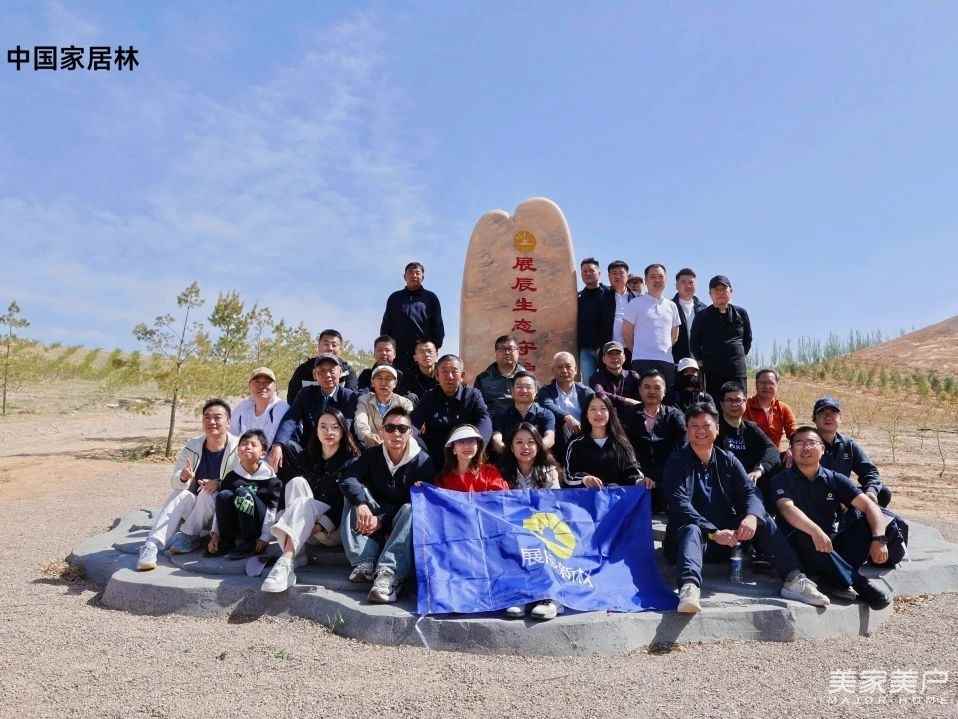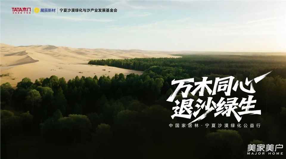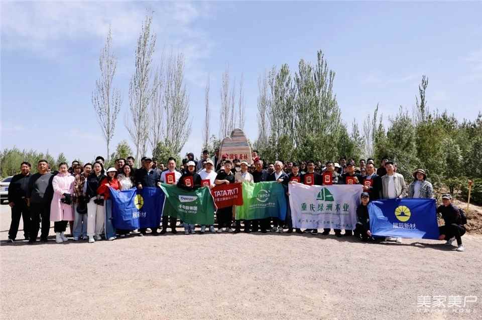 2025年4月29日,由宁夏沙漠绿化与沙产业发展基金会、TATA木门和展辰新材联合发起,科宝博洛尼、千年舟、威法、同福木业、东方雨虹、顶立、斗芽门锁、绿洲木业、中国木材与木制品流通协会等多家泛家居行业优秀企业及协会共同参与的“中国家居林”沙漠绿化公益项目,在宁夏银川灵武市正式揭牌启动。
