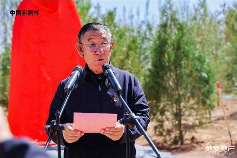 “人民楷模”、“全国治沙英雄”、“全国劳动模范”、宁夏沙漠绿化与沙产业发展基金会理事长王有德先生在致辞中强调:“我们不是为别人植树,而是为自己植树。家居企业以行动践行‘绿水青山就是金山银山’,展现了行业的责任担当,更为可持续发展注入坚实力量。”