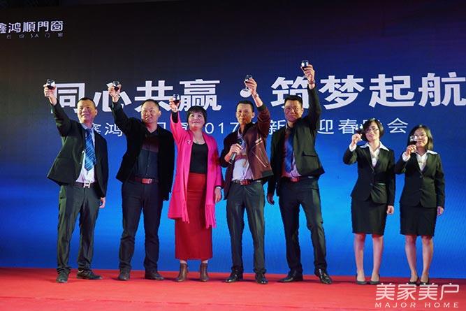 鑫鸿顺门窗总经理梁宇宙在致辞中说到:“正是有在座各位的大力支持,鑫鸿顺门窗才能走到今天。过去的一年对鑫鸿顺门窗来说是不平凡的一年,具有里程碑意义。2016年品牌进行了全面升级,完善服务能力,产品竞争力的提升,完成了鑫鸿顺门窗整体软实力和硬实力的打造,为鑫鸿顺门窗未来的发展奠定了坚实的基础。站在新的发展起点上,我们携手一致,展望2017年的奋斗目标和发展蓝图,我坚信,新的一年,新的希望,新的耕耘,会有新的收获。最后我再次祝愿在座各位新的一年里身体健康,工作顺利,阖家安康!”