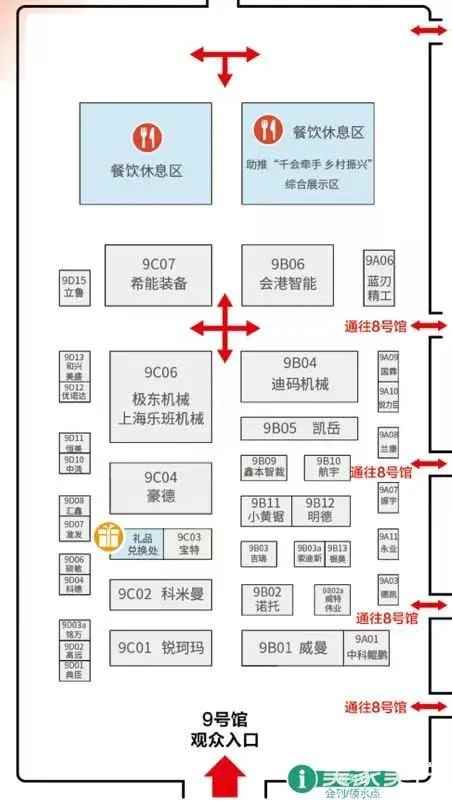 从博览中心7号门进入p2地下停车场,沿着导视牌从9号馆入口处入场。