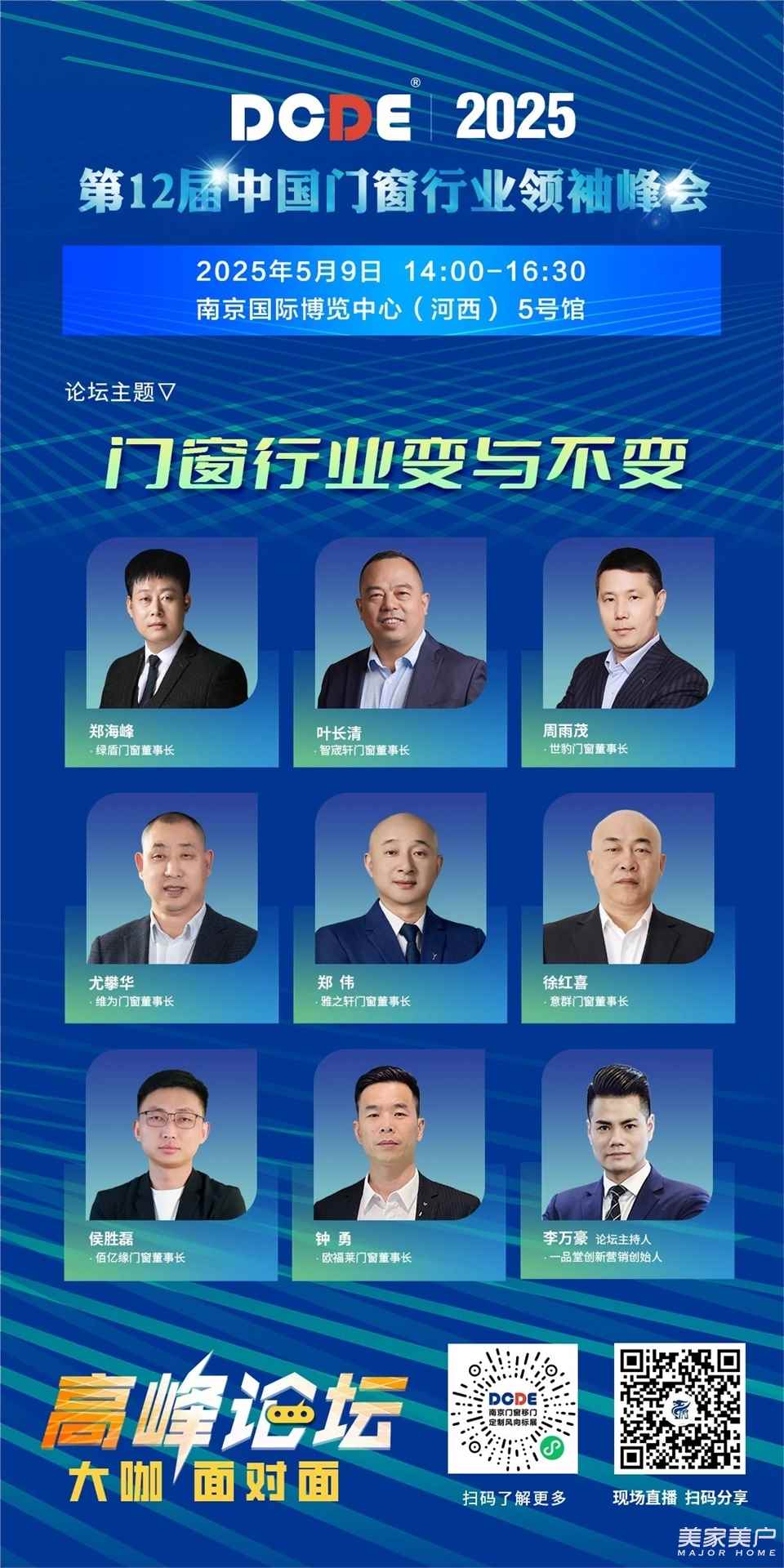 为积极应对行业挑战与机遇,助力门窗业内人士精准把握行业趋势、提升相关技能、并深度链接区域资源。2025年5月9日,由江苏省门窗行业协会主办的“第12届中国门窗行业领袖峰会”将在南京国际博览中心5号馆举办。